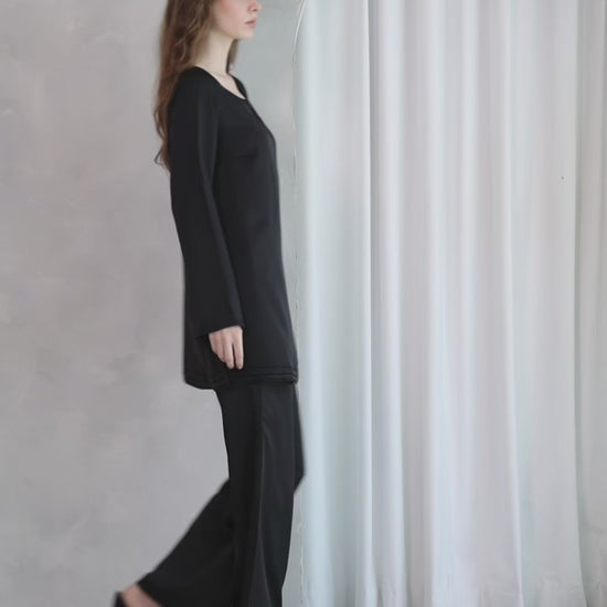 Set Includes: Long top + wide-leg trousers